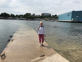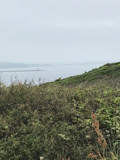 A slightly misty start which gave me a fantastic photo of the Mew Stone. A mild day which got hotter on the steep bits as the sun came out. It’s nice and flat round to Bovisand but climbs steeply from Heybrook Bay to the path above the fort. I’m not sure this was the best direction to take on this walk but I lived to tell the tale. Very few people out and about so I was able to bag the only seat on the cliff to enjoy my lunch. The cliff was full of birds and insects. Jennycliff brought me back to reality – it was heaving with people and dogs enjoying the day. A long cool drink at The Bridge, Yacht Haven where my taxi was waiting! A great sense of achievement today.
