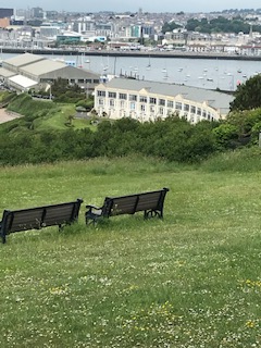 A beautiful summer day to tick off 3.4 miles. Tom came along for the ride which started on the Cawsand ferry from Plymouth Barbican. Asking me how we got the right ferry? Well, I went for the one with Cawsand Ferry writ large on the wheelhouse but just a guess. On a fine day the ferry is busy; as is the beach we land on in Cornwall but no passports required, maybe a concession for those among us of a Cornish persuasion. Go on Tom, admit it;) Cawsand and Kingsand merge together these days but back in 1844 Kingsand was in Devon while Cawsand was always Cornish. The old boundary marker is still there. Soon we were climbing out of the village. It’s a lovely walk, especially on a super day. Gentle climbing, above Fort Picklecombe and fabulous views of Plymouth Sound as we progress. The woods of Mount Edgecombe were littered with fallen trees and we had to turn back once or twice having ignored the path closed signs. Why do we think the signs don’t apply to locals? A nice cup of tea in the Orangery before chasing off to the ferry. Back in Devon there was no obligation to walk back to the Barbican having done that a few days earlier. Here’s where the bus pass comes in handy. Slow progress on my challenge, but under way.
