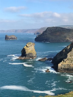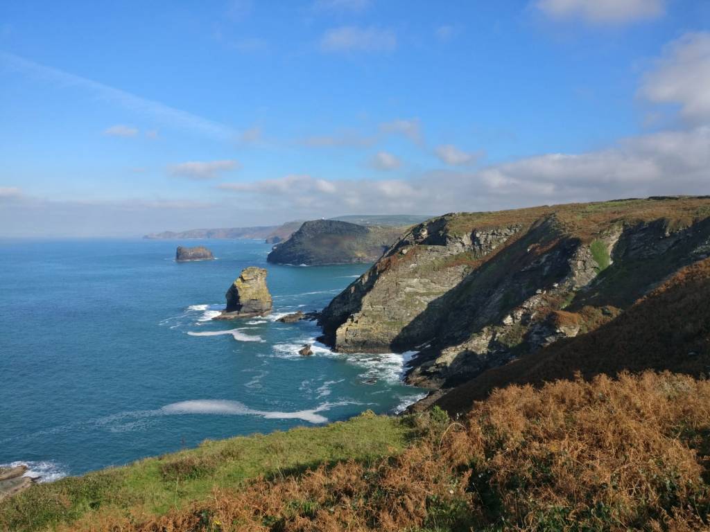 This walk presented itself quite unexpectedly. Charlotte, recently moved to Kenilworth, paid a visit so I joined her, Nick and Malory for a ‘gentle’ coastal stroll. It ticked off a few more miles for me and bagged some geocaches too. We walked to Boscastle but it would be just as lovely in the opposite direction, although the sun is low in the sky in October so it was easier to have it setting behind us. Beautiful scenery with many headlands, but also many steps down into deep valleys and by necessity up the other side. Fact: the coast path has over 30,000 steps so I guess it was good to get some of them out of the way early on. The path was busy at both ends, but in the middle very tranquil. My knees would classify it on the tough side of moderate because of the steps.
