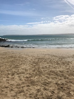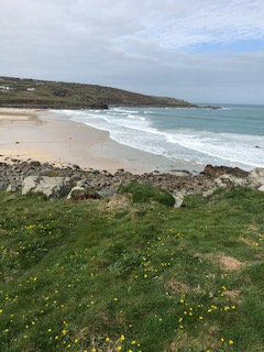 16 April 2018. Breakfast in St Ives with Charlotte, Nick and Malory before this estuary walk to Lelant. It was a dull, damp day which got brighter and hotter involving delayering and then carrying excess clothing. I like to get going but my companions have a more leisurely approach as a rule. Today it involved walking in the opposite directions for a while, to get a geocache or two. St Ives is pretty, but overly busy so it was nice to get out of town and lose the bustle. We followed the railway track for a while, passed through a holiday resort at Carbis Bay and then crossed the track to the estuary side of the golf course. Not too strenuous and of course superb views back along the coast to Godrevy. As always I find the coast path ahead, or behind me, somewhat overwhelming. It all needs to be trod in this challenge if I’m to succeed. One day I hope to look at the view and see miles and miles of path that I’ve walked. Still……..won’t get done if I keep talking about it. At Lelant we walked up to the main road, passed some hours earlier on the bus, and had a late lunch at the Badger Inn. Yummy too. The return to St Ives was by train on the St Erth line. Not a cutesie steam train along the estuary but a proper Great Western service, albeit a 2 carriage jobbie. Lelant is a request stop so waving of arms is required. Another delightful estuary/coastal train ride which ended our walk back in St Ives.